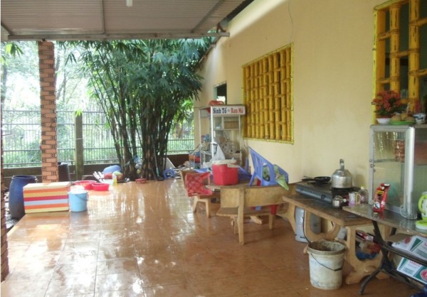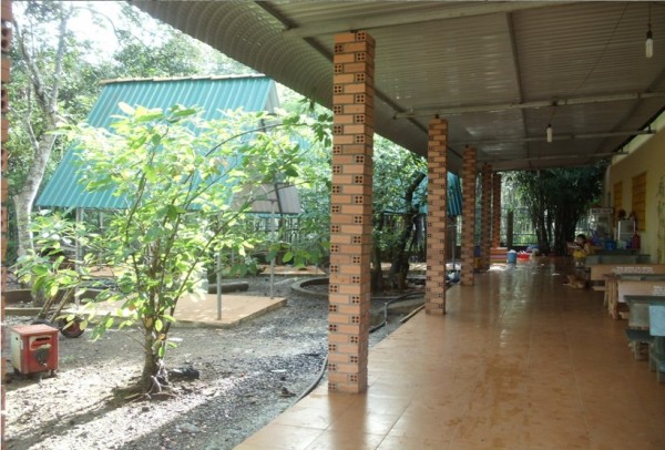 Phía bên tay trái của cổng chào là Căn tin. Ở đây cũng chỉ có vài bộ bàn ghế đá cho Quý ân nhân nghỉ ngơi. Thầy cũng đang dự tính sẽ cố gắng làm sao để có một Căn tin hoàn thiện hơn cho các Quý ân nhân nghỉ ngơi được thoải mái, đặc biệt là các bác tài xế.